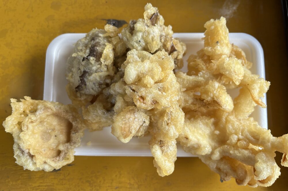 せっかくなので、別途きのこ天ぷらも注文。揚げたてをみんなでシェアしながら食べると、より一層おいしく感じます!
