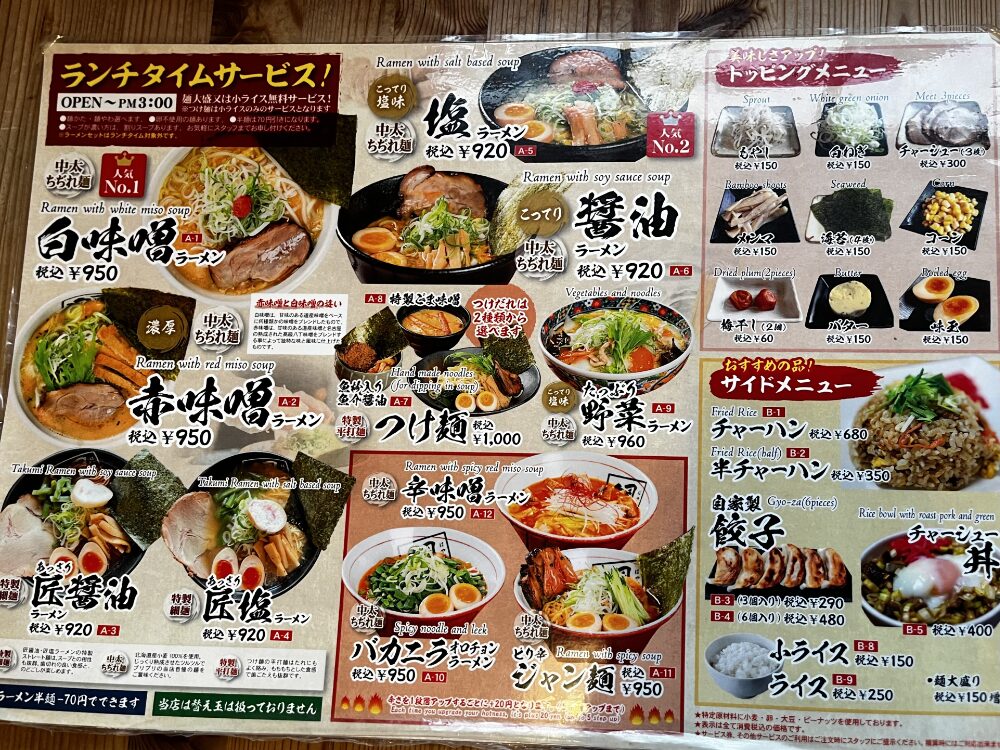 そんな道中で見つけたのが、ラーメン屋「追風丸」でした。こちらの創立者は沖縄出身の奥原さんという方が生み出した「奥原流北海道ラーメン」とのことです。