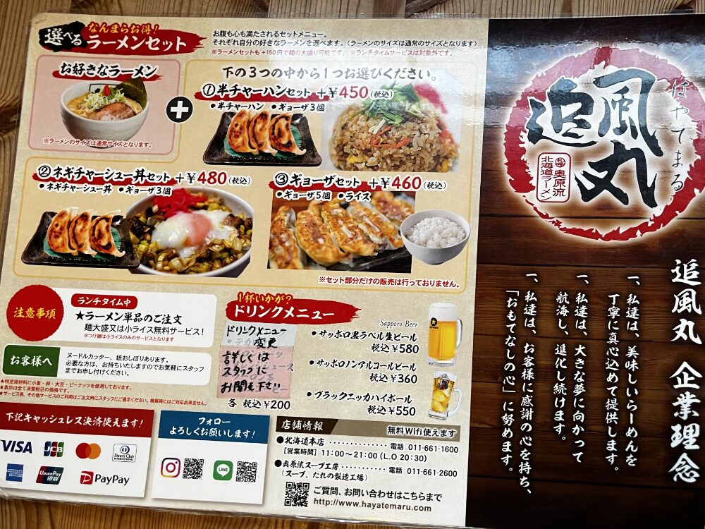 今回は札幌・手稲のラーメン屋「追風丸(はやてまる)」に行ってきたので、その体験をゆるっと書いていきます!